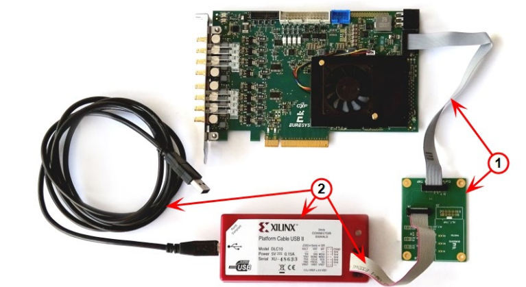 CustomLogic開發工具為Xilinx的Vivado套件,使用的FPGA為Kintex Ultrascale XCKU035,用戶可以使用該FPGA 70%的邏輯資源。通過3613 JTAG適配器Xilinx編程器(圖中①所示)連接到Coalink FPGA進行調試。