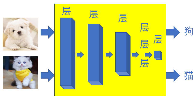 看到下圖中的大概過程了嗎?沒錯(cuò),深度學(xué)習(xí)的流程就是經(jīng)過層層篩選、層層選拔、層層遞進(jìn),然后才可以給出最終的答案,所以這個(gè)“深”就體現(xiàn)在這個(gè)分“層”上。