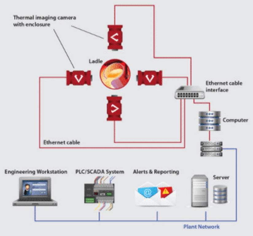 紅外熱成像技術(shù)廣泛應(yīng)用于工業(yè)生產(chǎn)制造等多個(gè)領(lǐng)域和環(huán)節(jié),適合很多高溫場(chǎng)景,鋼包耐材紅外熱像監(jiān)測(cè)預(yù)警系統(tǒng)就是比較典型的應(yīng)用之一。