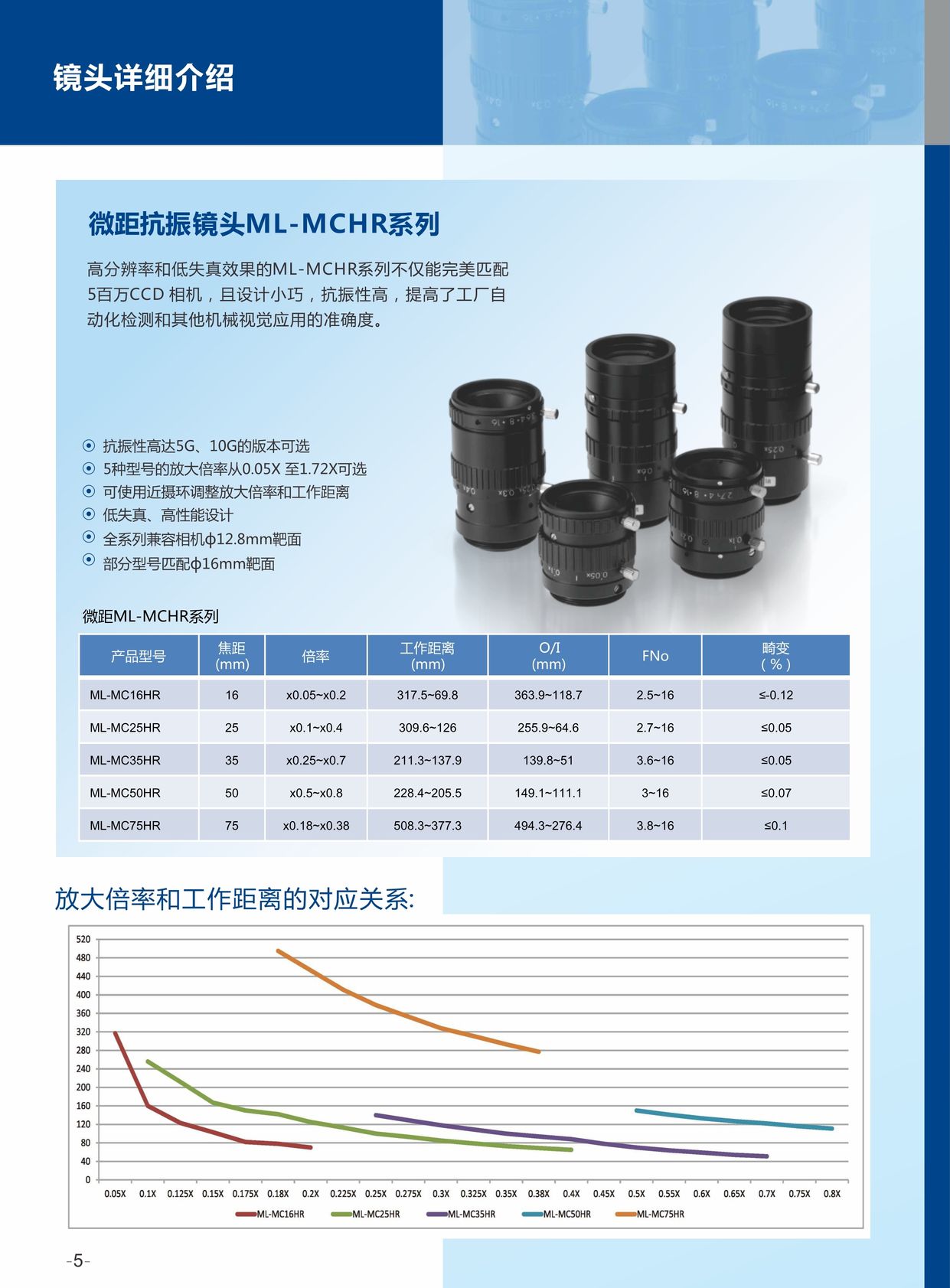 高分辨率和低失真效果的ML-MCHR系列不僅能完美匹配5百萬CCD 相機,