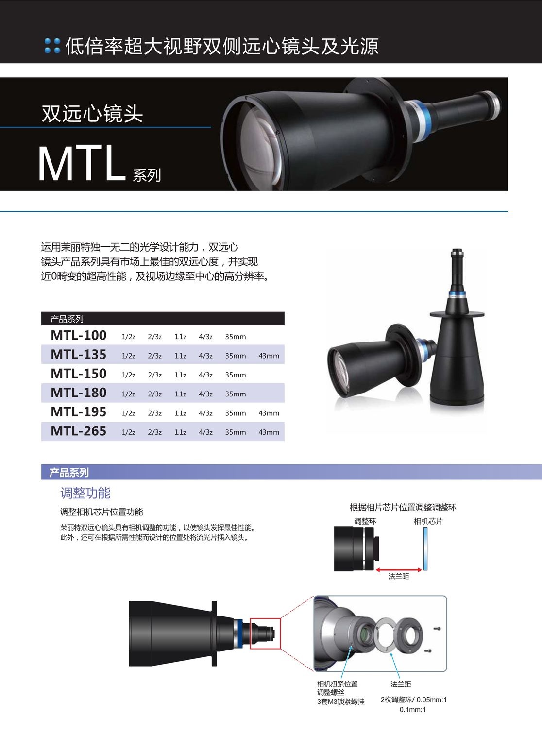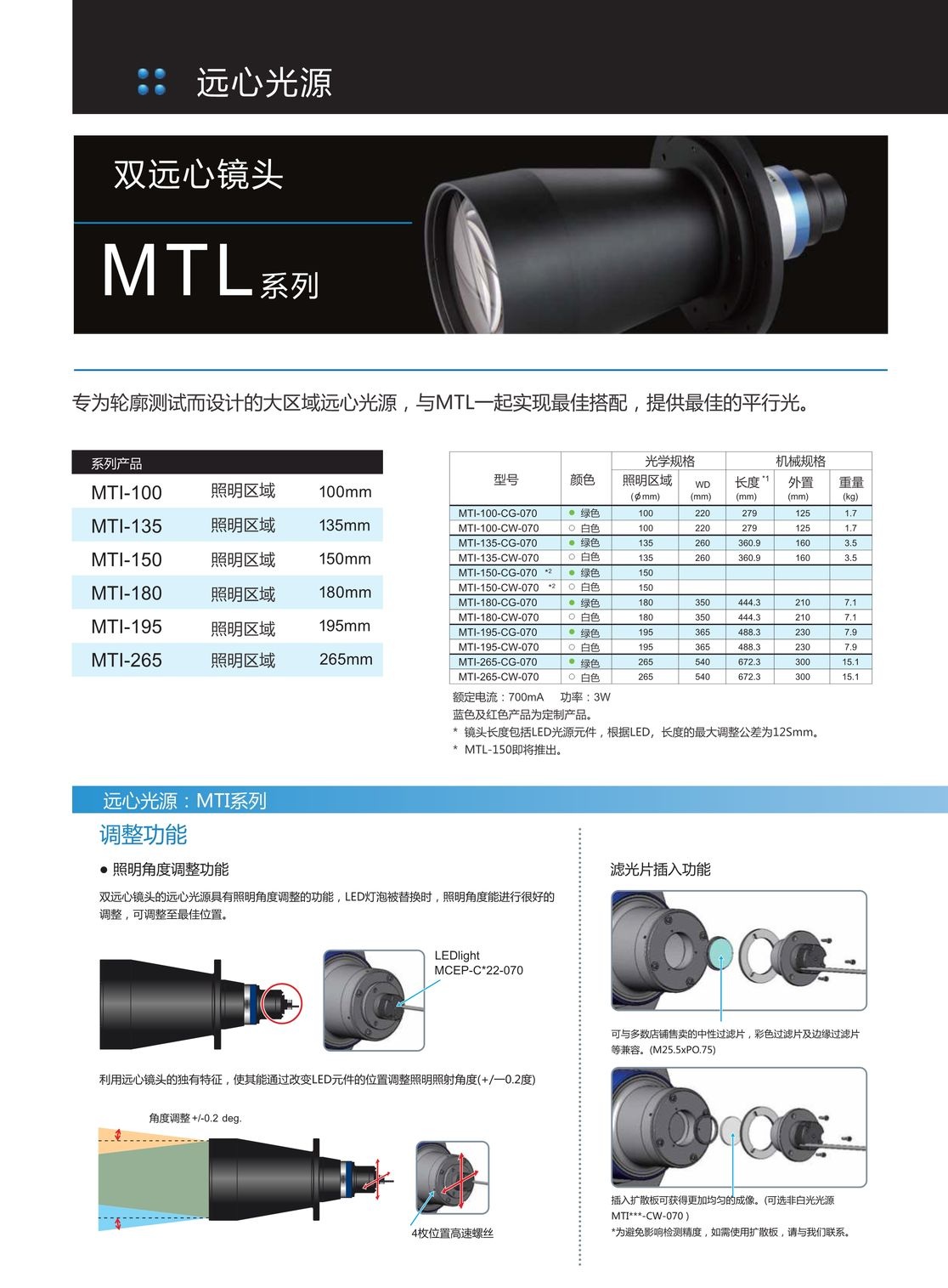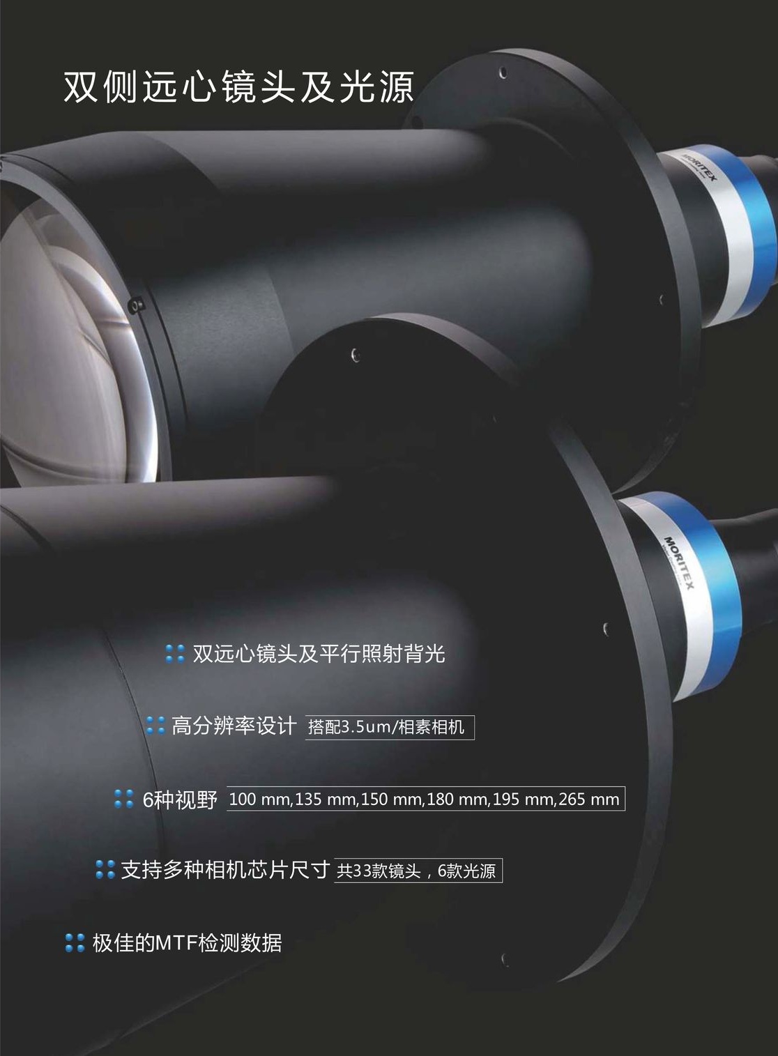 低倍率超大視野雙側遠心鏡頭及光源MTL/MTI系列