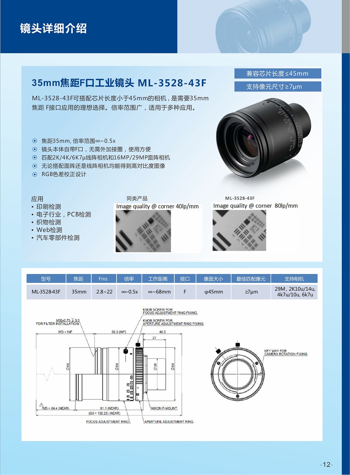 35mm焦距F口工業鏡頭ML-3528-43F