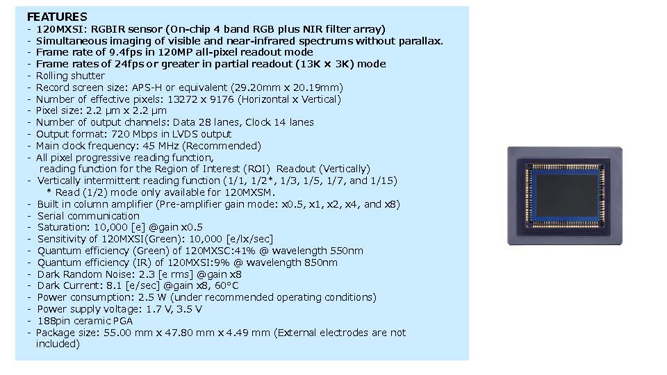 -Quantum efficiency (IR) of 120MXSI:9% @ wavelength 850nm