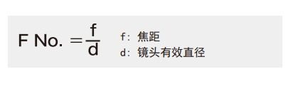 光闌指數(shù)(F)是影像亮度的一個(gè)表征。數(shù)值越小,亮度越高。通過焦距和鏡頭的有效直徑之比可以求出光闌指數(shù)。
