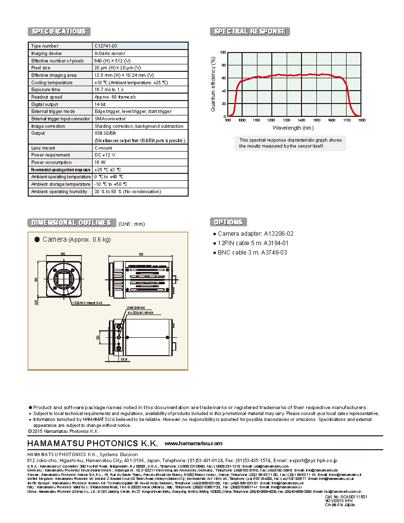 濱松 InGaAs camera C12741-03