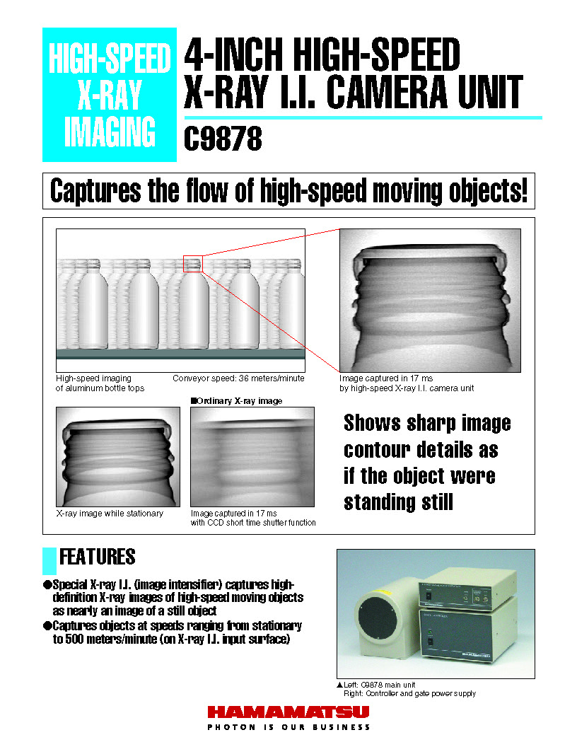 Captures objects at speeds ranging from stationary to 500 meters/minute (on X-ray I.I. input surface)