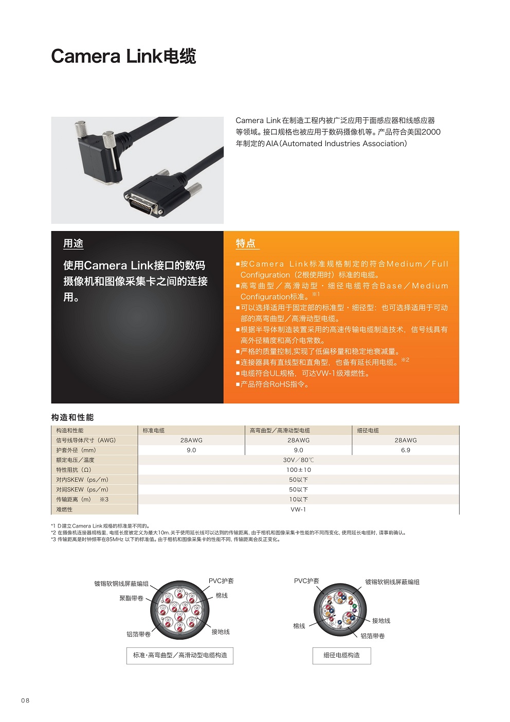 ■按Camera Link標(biāo)準(zhǔn)規(guī)格制定的符合Medium/Full Configuration(2根使用時(shí))標(biāo)準(zhǔn)的電纜。